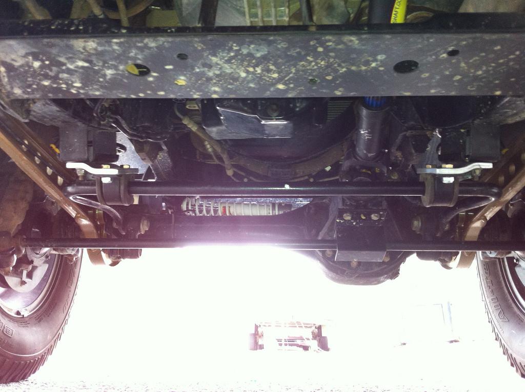 ,  why dont you get rid of that horrible thing - how the hell can you go four wheel driving with the links hanging down that low.  Surely thats not how they are meant to be.