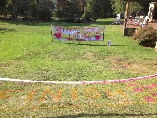 Well the girls got home around 5.30 last night I think. All the husbands and kids were there waiting for their girls. It made me stop and think how many people are involved or affected by this journey. Four blokes and 10 kids.