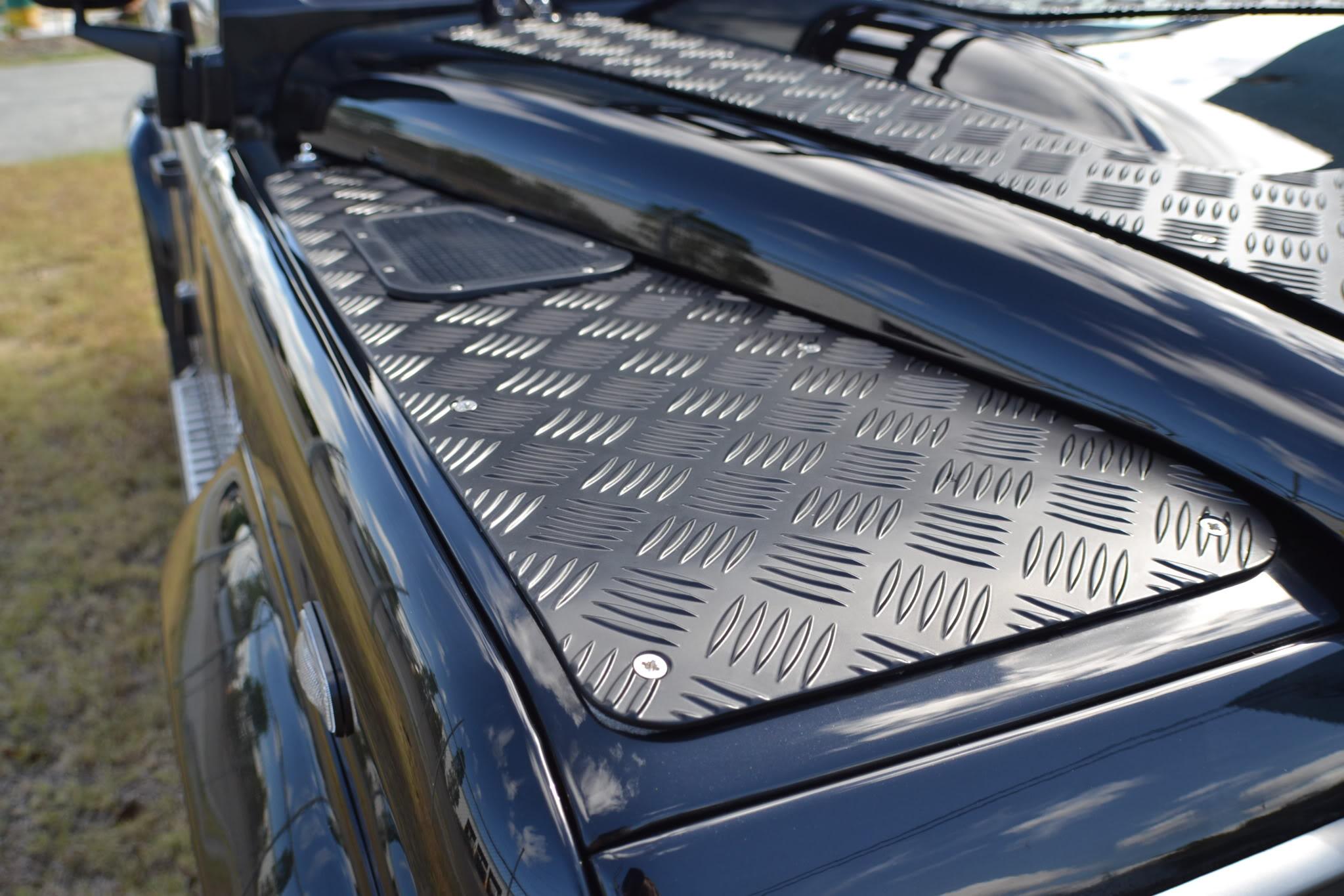 I've got black powder coated wing tops from All-4-Wheels in the UK and they are my third set (third Defender as well!) and I've never had a single issue with them chipping, flaking or peeling. The gear is 3mm 5 bar checker and its never bent under my weight (100kg). You do however need to buy your own fastenings and I've always gone for stainless steel.