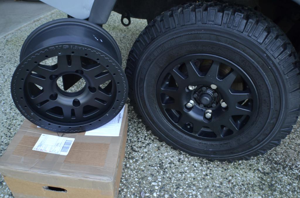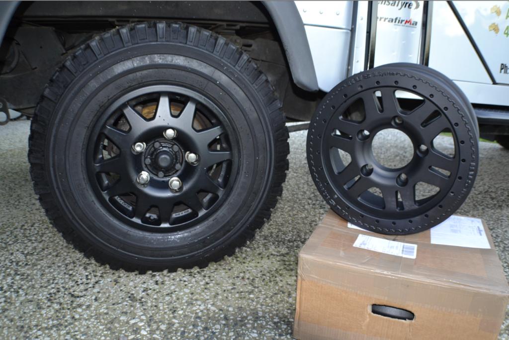 I have 255/85 r16 maxxis bighorns on my defender 110 with standard alloy 16x7 +33 from memory, rims. They did not rub at the front but did touch and rub the back spring mount after I fitted dislocation cones/longer travel shocks. I then fitted some spacers from a U.k supplier that moved the wheels out 30mm and problem was solved. Before you say it yes I know not 100% legal but they are approved in both u.k and Germany and are a lot cheaper than a new set of wheels. The bighorns i have are now at 35k's and are getting fairly noisy at higway speeds and will need to be replaced in about 10-15k's. One had a strange wobble at 75-85kph but is better now its been rotated to the rear?