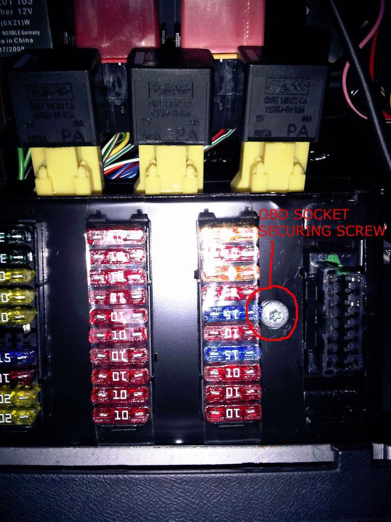 What i did was to plug in the scangauge/ultragauge etc and then undo the OBDII brackets fixing screw and gently push the whole ensemble back into the fuse box. It wont go all the way as the OBDII bracket won't allow this. The OBDII leads supplied by the scan tool companies is the low profile 90 degree one so by undoing the mounting screw and using this cable the fuse box cover goes back on with a slight hump visible once fitted. I know that some people push the OBDII lead out of its mounting bracket and then feed the socket around the back of the fuse box. Though you would need to pull it back into place for dealer visits/breakdowns etc so that you can plug in a diagnostic tool. Others have used an OBDII splitting cable so that the scan tool can be left connected and there is another OBDII port to allow the use of a diagnostic tool. Just remember to unplug the scan tool before using a diagnostic tool.
