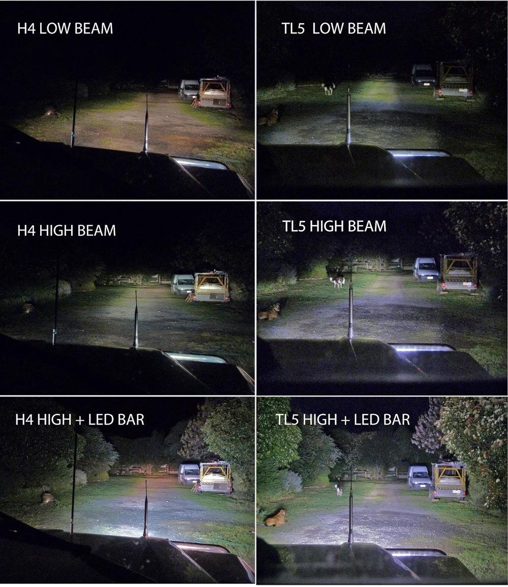 Wow goingbush, that's impressive, I don't think my high beam is as good as the TL4 low beam. Do you mind if I ask how much they are, where you got them and what size led bar you have? I have a couple of rusty old spotties at the moment I was thinking of replacing with a candle.