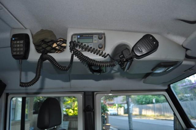 I fitted my Uniden UHF in front of the cup holder using a couple of $1.00 angle brackets fitted under the cup holder. The mike is mounted using double sided mounting tape. No holes needed to be drilled as existing bolt holes are used.