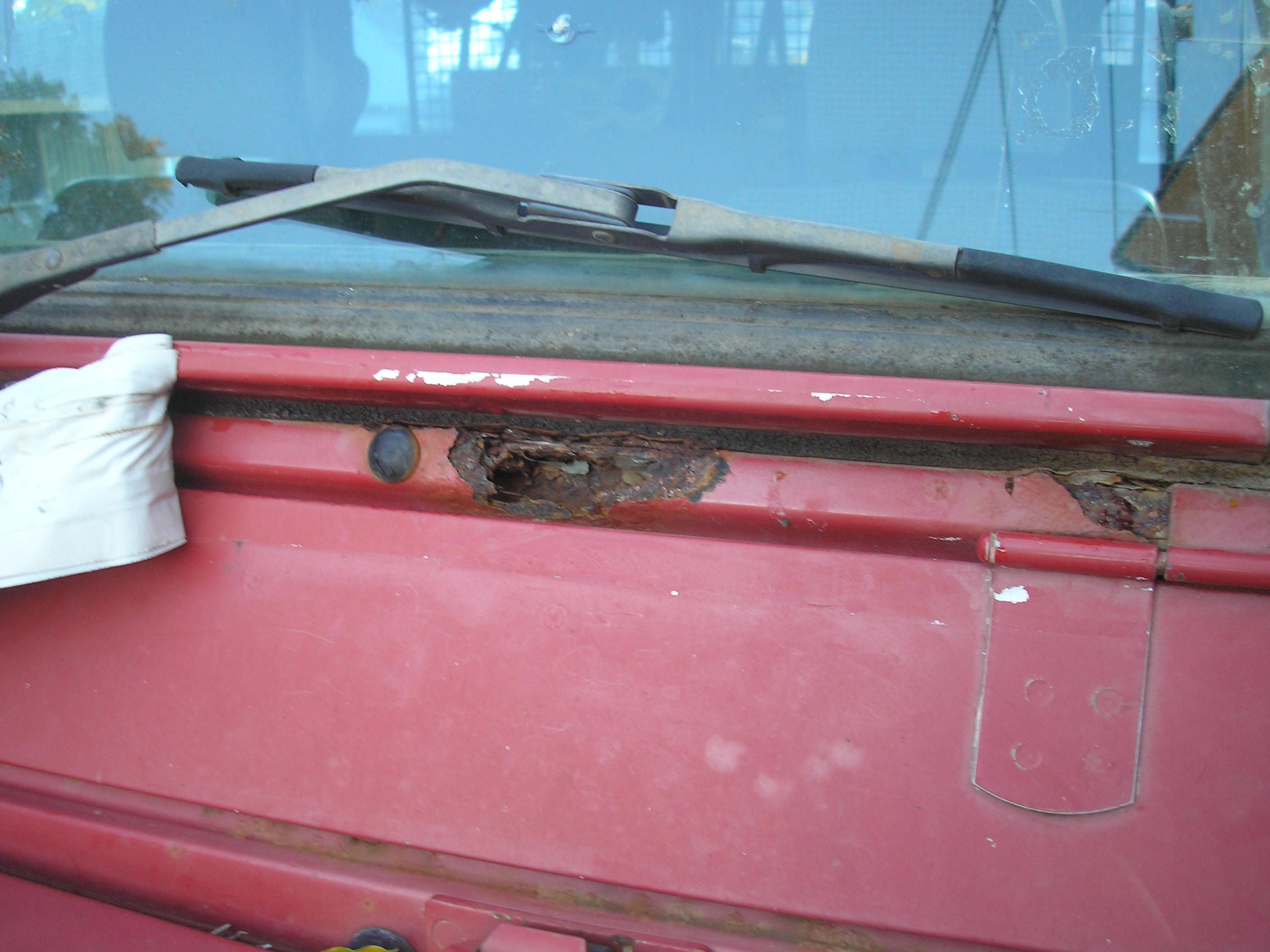 A few weeks ago I noticed some bubbling of the paint under the screen between the pop up vent and the screen on the passenger side. A bit of a poke around had me concerned with the depth and extent that the rust had taken hold.