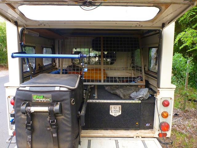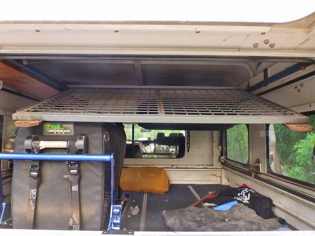 The second shot of it resting on the lid of the fridge is how i normally access it. Then i can load the gear in and it holds in place. To the left of the hatch is a wooden board that can hold all my awning poles and chairs.