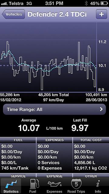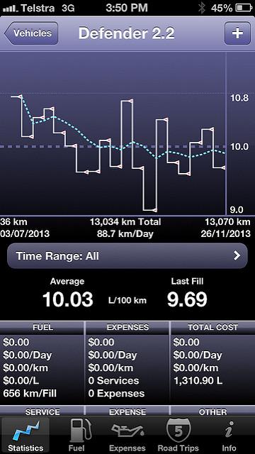 this however is not an accurate measurement of course...on a recent trip out west I was getting up around 17.5L per 100km that's with a box trailer with 350kg in it,3people and 4 dogs but I do have 285/75/16's so I am considering going to 265/75/16's next see what happens...it often makes me wonder why I didn't buy a v8 duel cab toyota for a smoother ride and more power for I'd say around the same fuel economy.