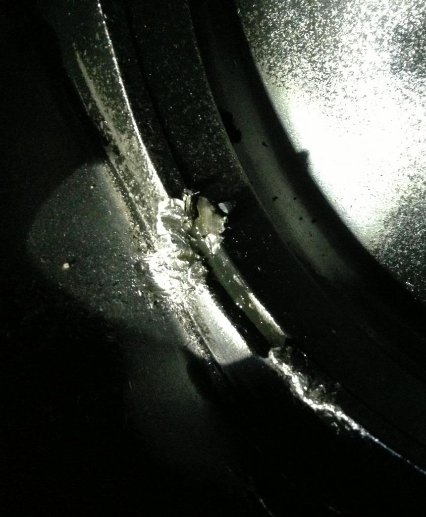 One of the threads is still in the wheel BUT the other one is missing.....l am assuming it has prob been ground to nothing?!