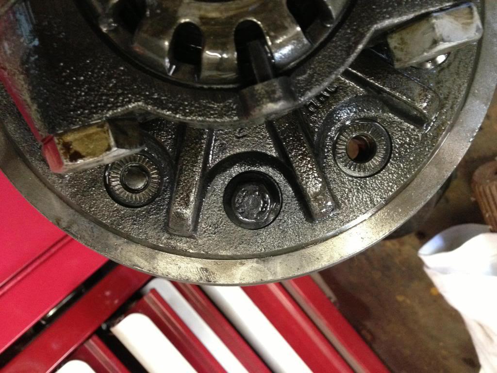 Diff out and l cleaned the pan to find two bolt heads from the Crown Wheel in the base of the pumpkin. Some damage to the lip of the pumpkin to. (File that down).