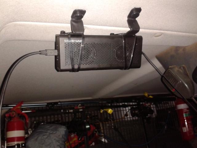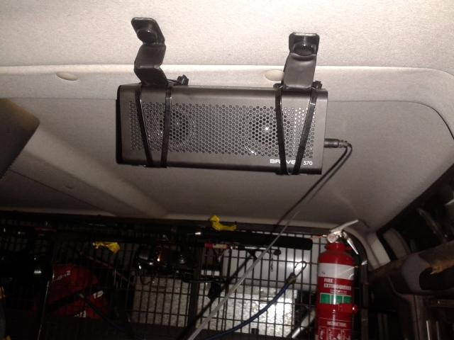 Instead of increasing the volume produced in speakers around the car I decided to use some smaller speakers positioned closer to my ears. Defenders are already noisy enough.
