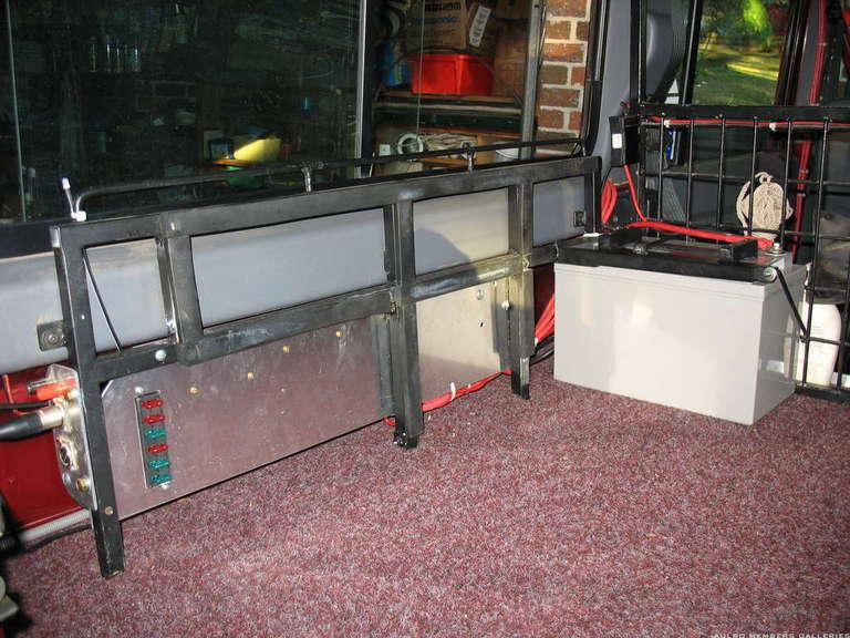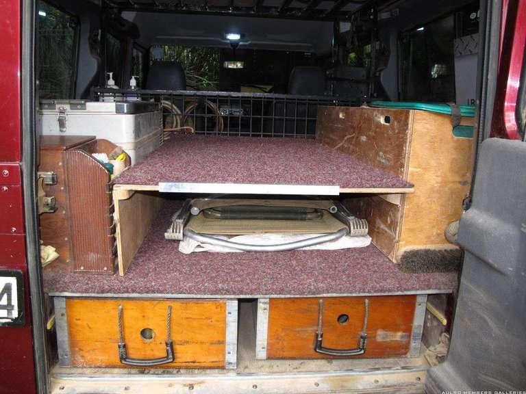 The fridge and Box are attached to a tubular steel framework that I fitted to each side of the rear load space and, as can be seen, the LHS also houses most of my extra electrical gear - utilising the curve in the bodywork and is out of the way.