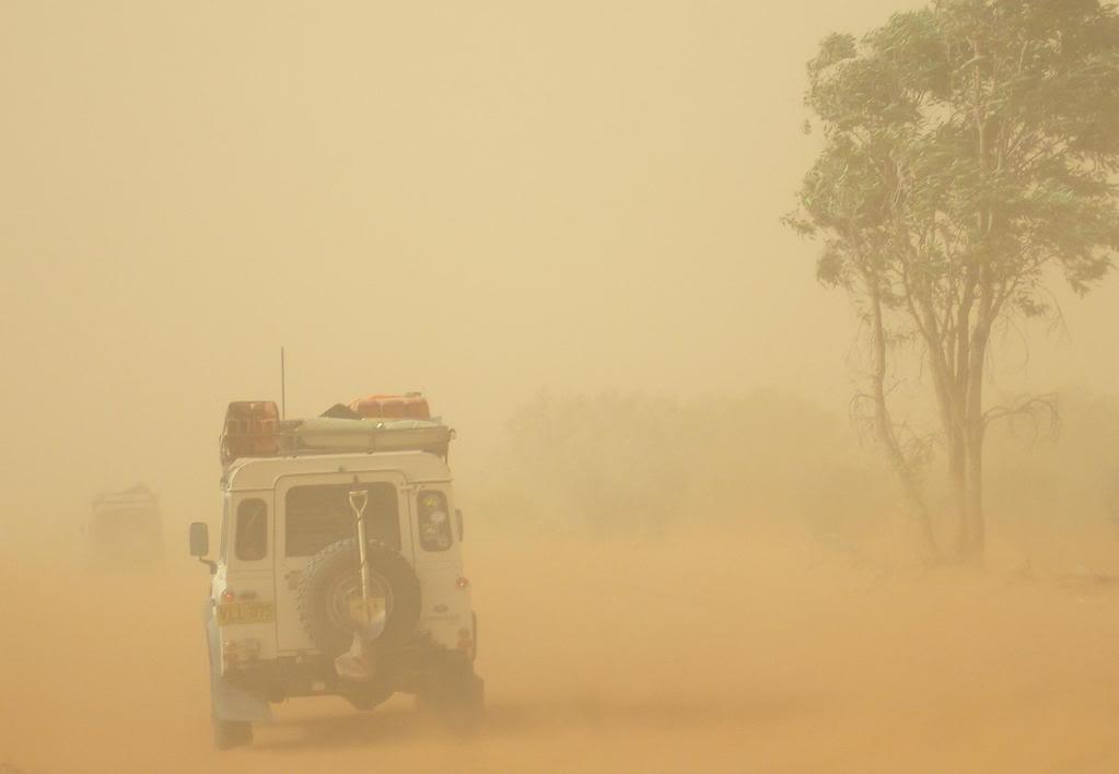 I slipped off my shoes and pulled an explorer sock over the open pipe, snigging it up with some tie-wire, to at least try and provide some filtering on the very dry dusty track.