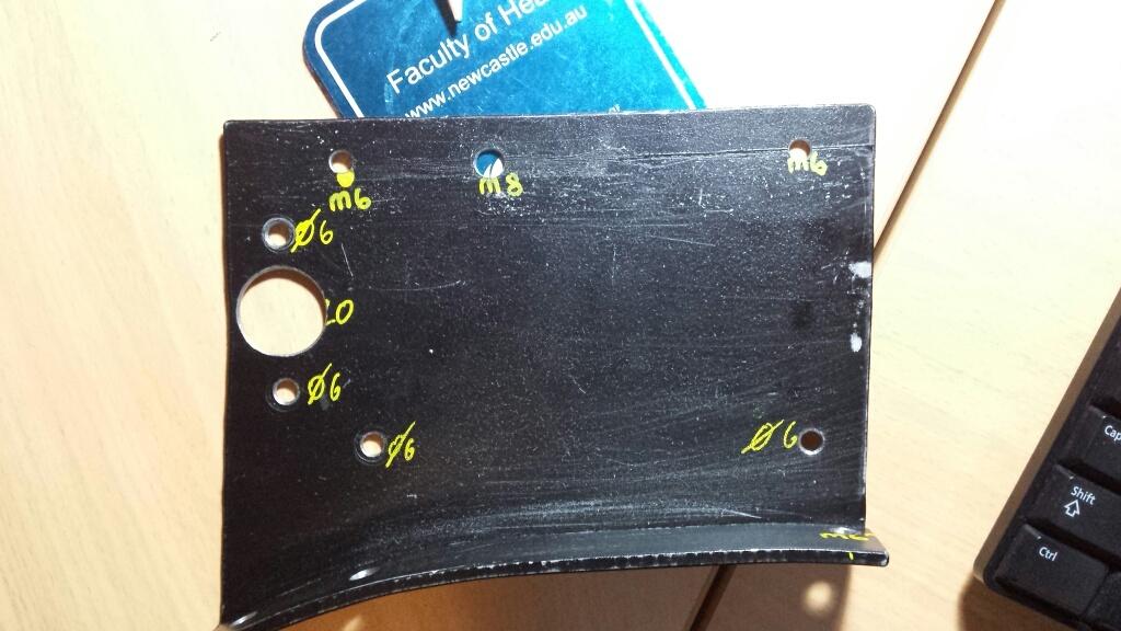 I'm going to make up a bracket to hold the winch solenoid box within the wheel arch. While it was all apart, I made up a template to cut on some sheet steel. I've got some 2mm sheet at work i can plasma cut to shape, and I'll probably bend up a piece of 3mm Bar to match the radius of the wheel arch. It should be pretty easy to tig it up, give it a lick of paint, and she'll be apples.