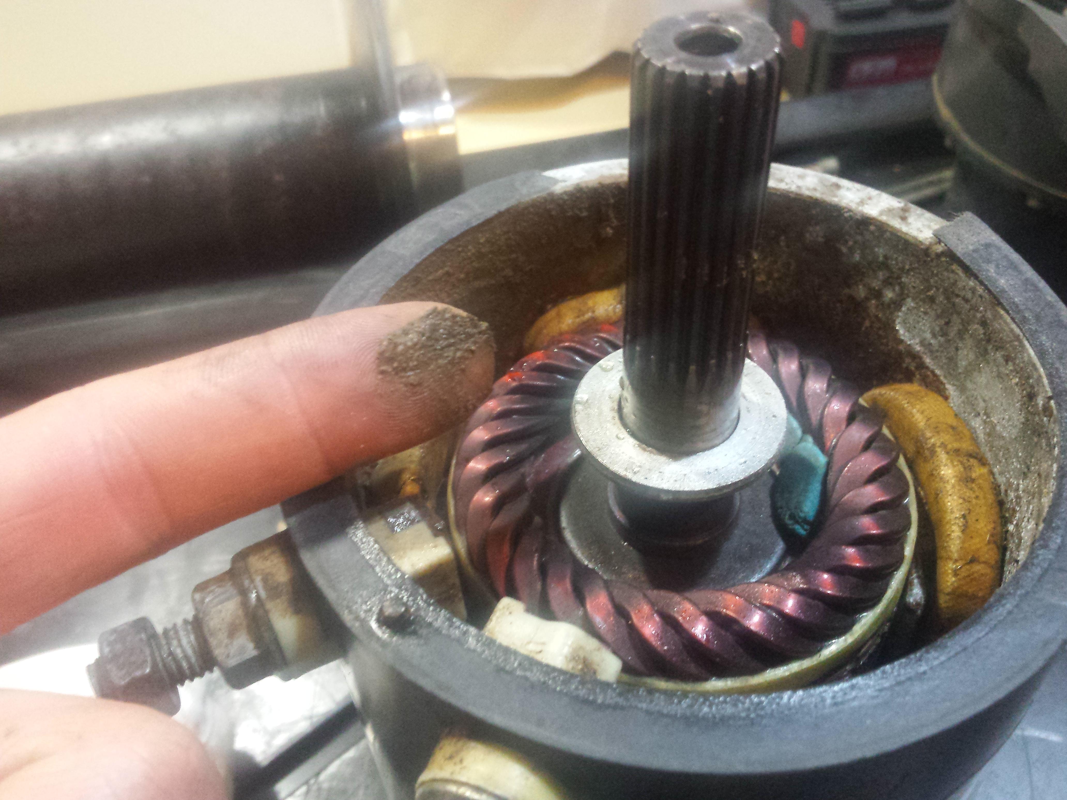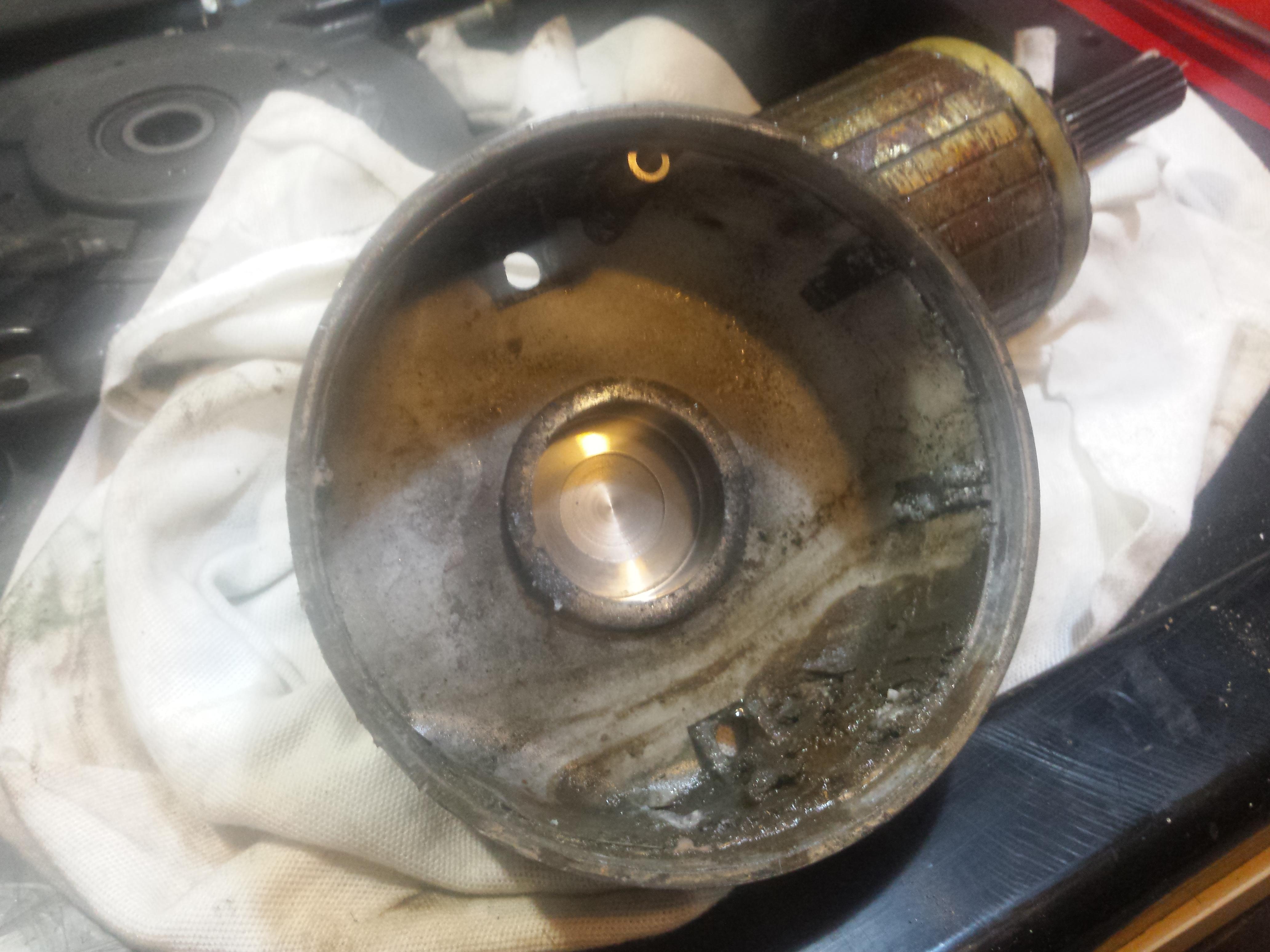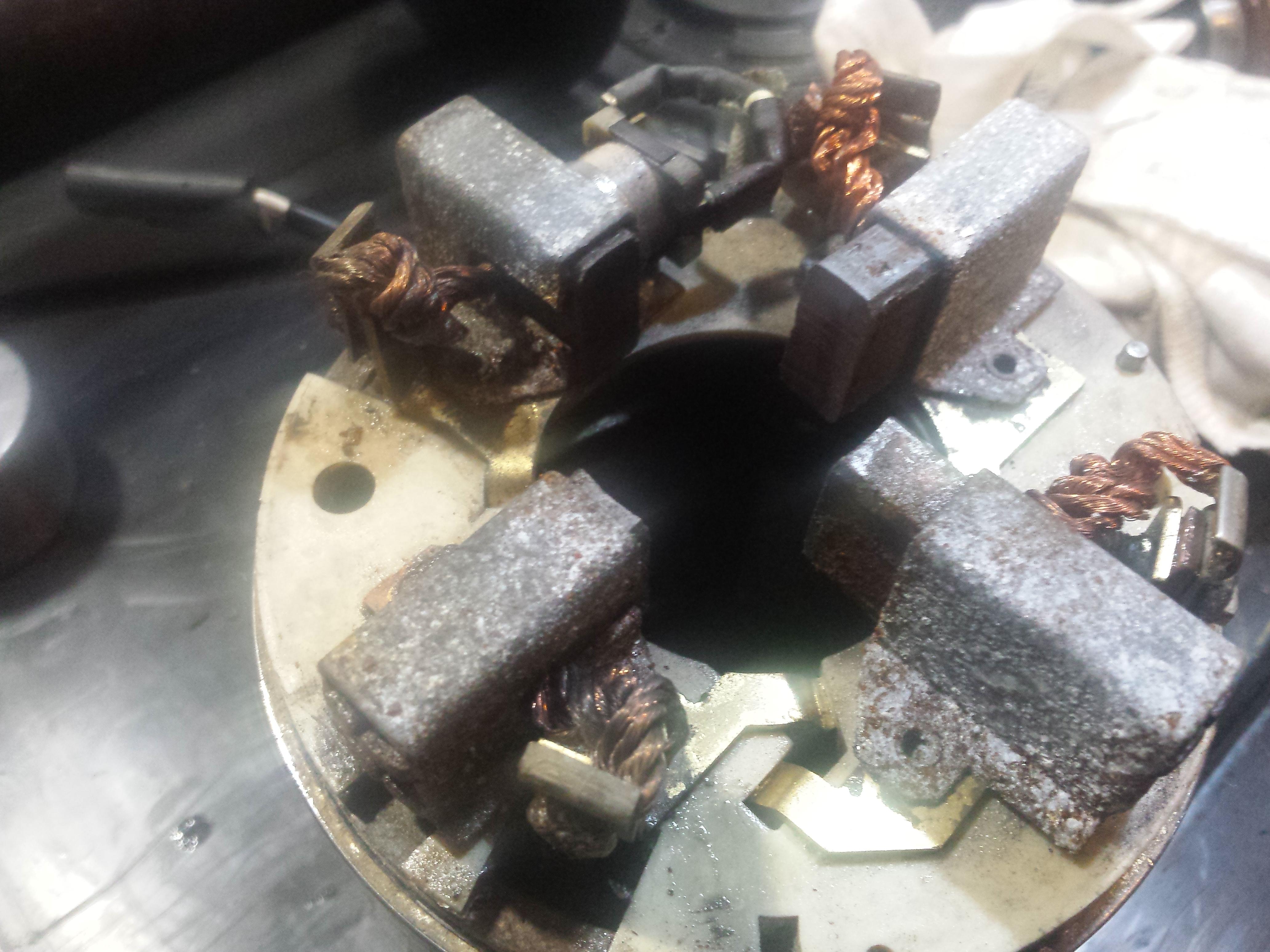 2/4 Brushes are seized within their holders, and the rotor has some significant rust and light scoring in the area where the brushes wipe over it due to all the sand and mud that was inside it.