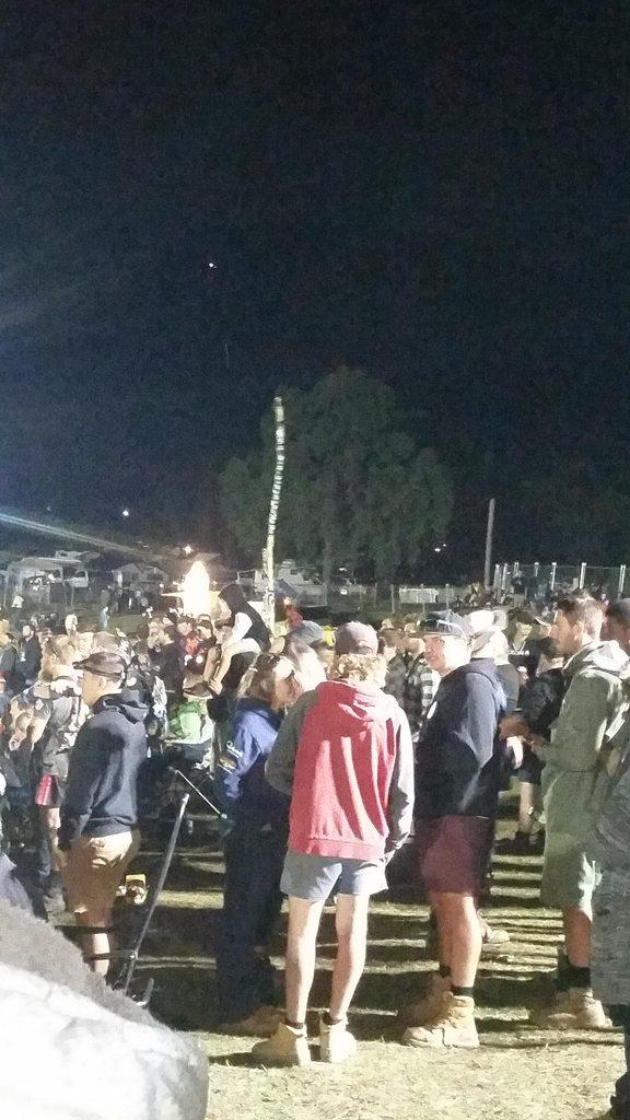 These blokes had a beer can snake going. Shortly after they were skulling beers out of someones shoe. There was also the obligatory tits out for the boys chant, interjected by a chorus of 'GIVE IT' when a car was revving or stuck on one of the obstacles. In the distance in the feral hill camping area, there was the occasional gas cylinder exploding in the fire, as well as fireworks and revving of their engines.