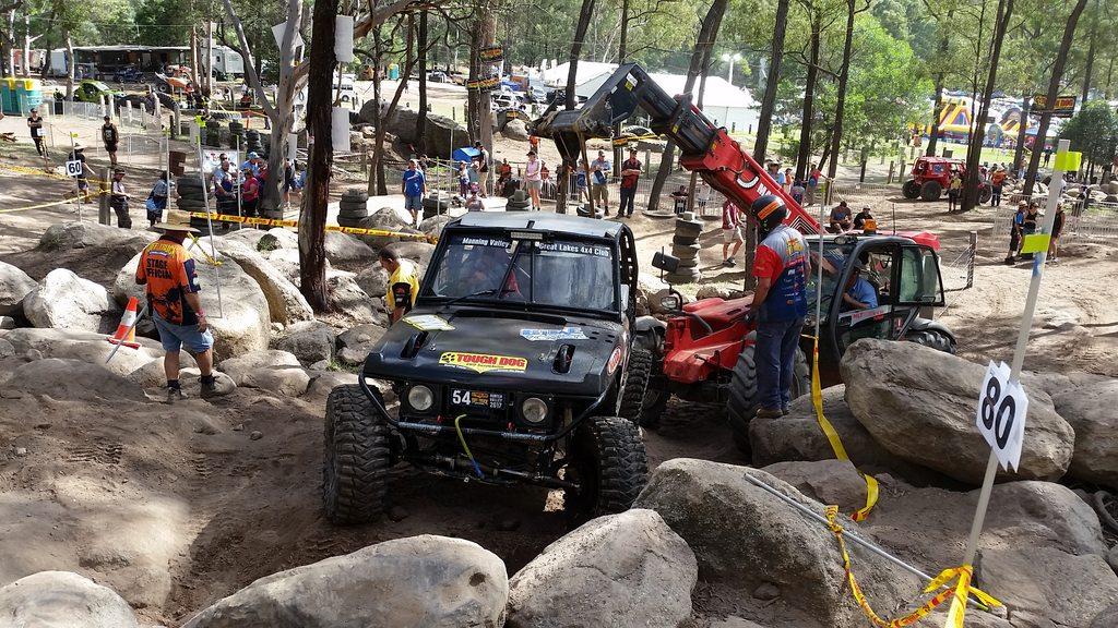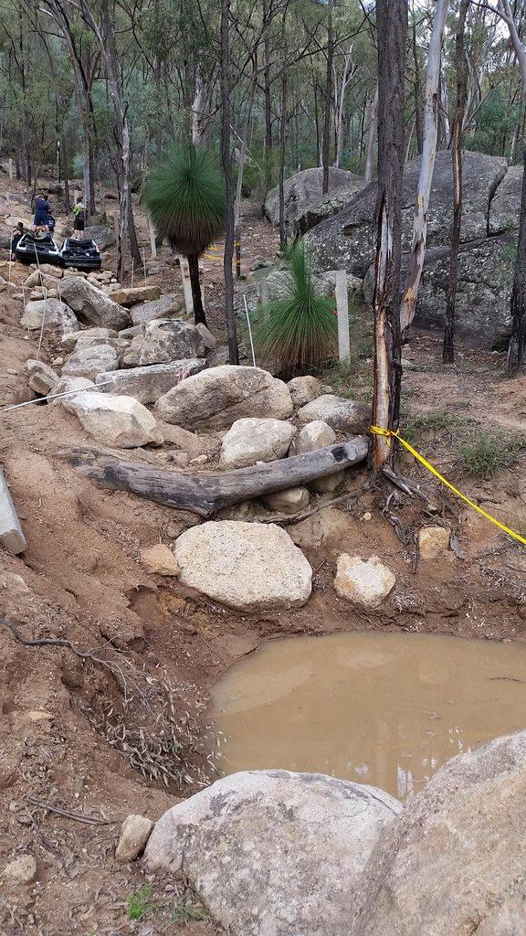 This was the first vehicle across our track for the weekend. It went well, given that the track only deteriorated as more vehicles chewed it up. We had a few boulders which would have been a good tonne, move along the track over the weekend. The Manitou was called into to reset the field of play on a few occasions.