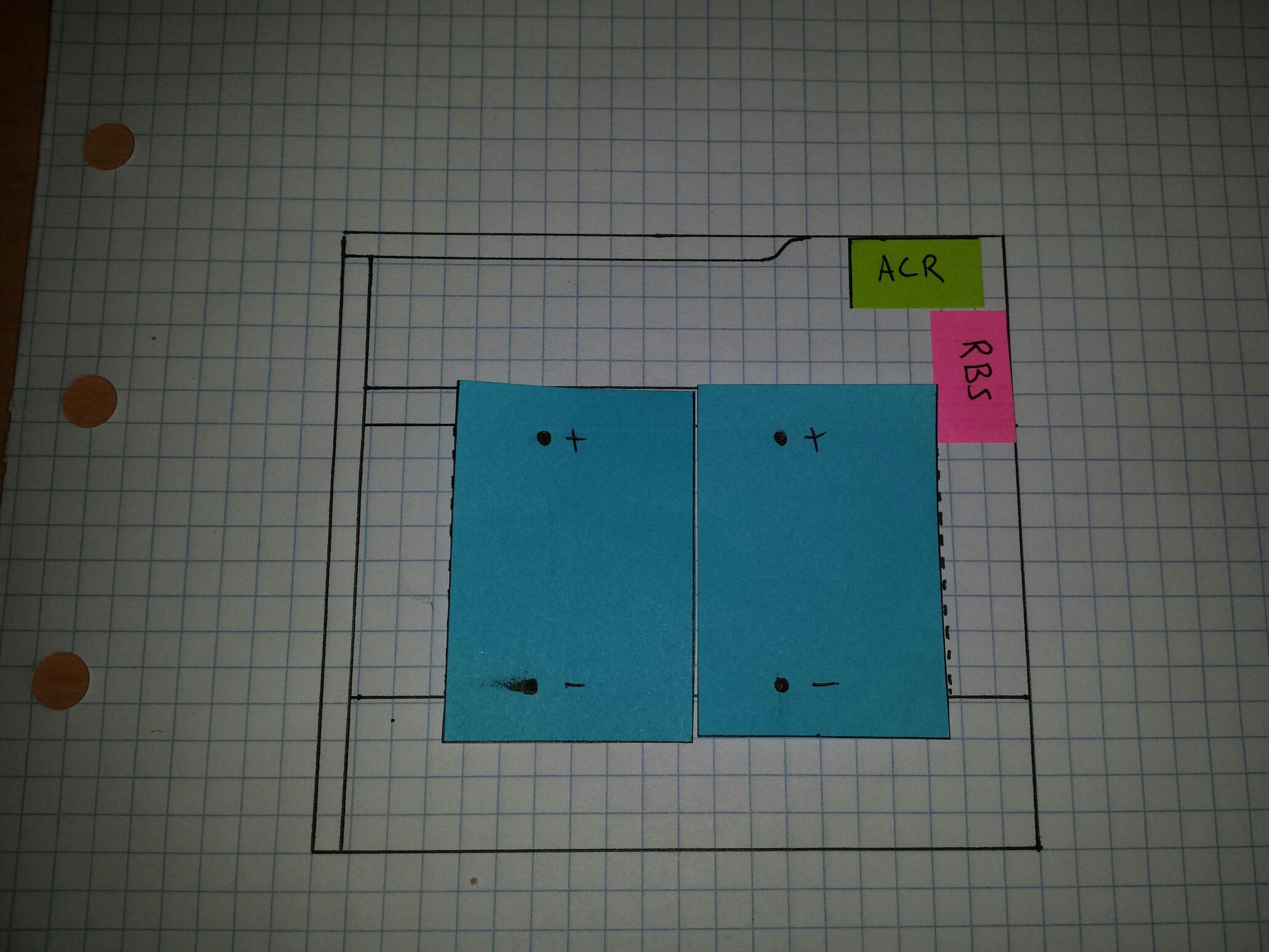 Once I got back to the comfort of the study, I drew a scaled Plan view image of the battery box, to see how I could Tetris everything together. Tetris is not a verb, but it is a fitting one in this instance. Each 5mm square on paper is 25mm in the battery box.