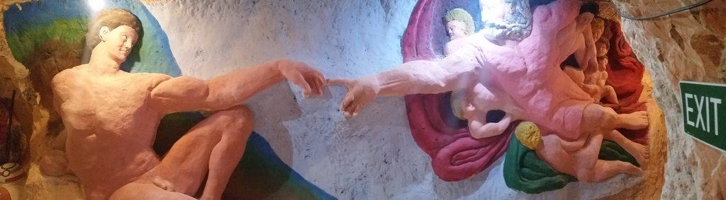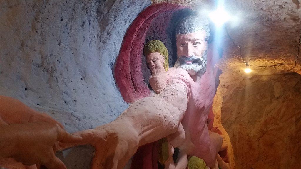 This is an opal mine which was not particularly profitable, hence the mine owner (who incidentally, was a fairly good sculptor) decided to make a tourist attraction of it.