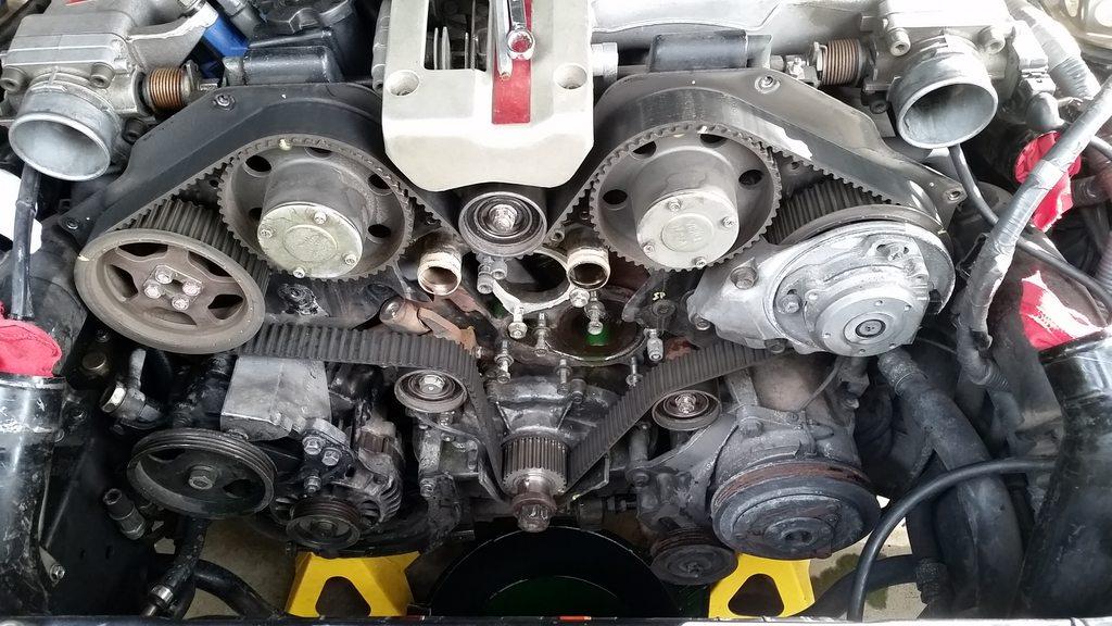 This includes a new timing belt, auto tensioner, idlers, studs, water pump, Variable cam timing springs O rings etc, cam/crank seals and a crank sprocket. There's a bit of work there for a muppet like me.