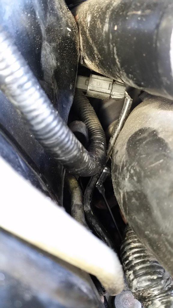 Anyway. Getting to the point. Tight quarters. Very little room. Intake/turbo hoses everywhere. Can't even see the engine mounts or turbos if you try under all that V6 craziness. The below pic shows a flex head ratchet spanner in the bowels of the beast attempting to get off a hose clamp on the airbox to turbo intake tube. 1 freaking 32nd of a turn at a time...