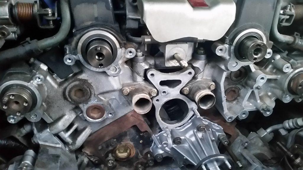 Spent the rest of Saturday putting it all back together, timing covers, gasket goo on the thermostat housings, and a bit of a general clean-up.