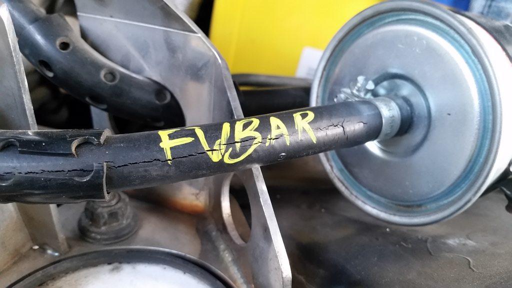 Akula did a stellar job of noticing this- perished fuel injection hose. They mustn't make it like they used to- this is probably 6 years old (and less than 20,000km!)