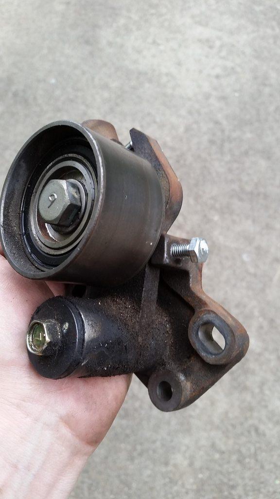The Z uses one of these gadgets to keep the timing belt tight. It has a little M6 bolt to pre-tension the swing arm on the idler to keep it where it needs to be during install. This NEEDS to be removed once installed, and all the timing belt tolerances re met, otherwise it can vibrate out, fall straight down into the crank sprocket, and mince the timing belt to shreds, killing the engine in a very spectacular way. I don't need this in my life. And for the life of me, it dawned on me at 3am in the morning that I couldn't recall removing it.