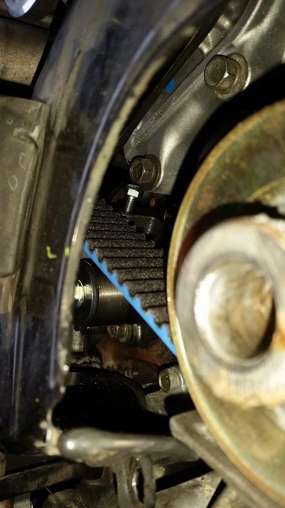 Removing the bolt is a bit of an ordeal- the timing covers are a 3 peice unit which need to come off in sequence, which also involved undoing all the gasket making for the thermostat housing that'd taken a good hour of jiggling to get right.