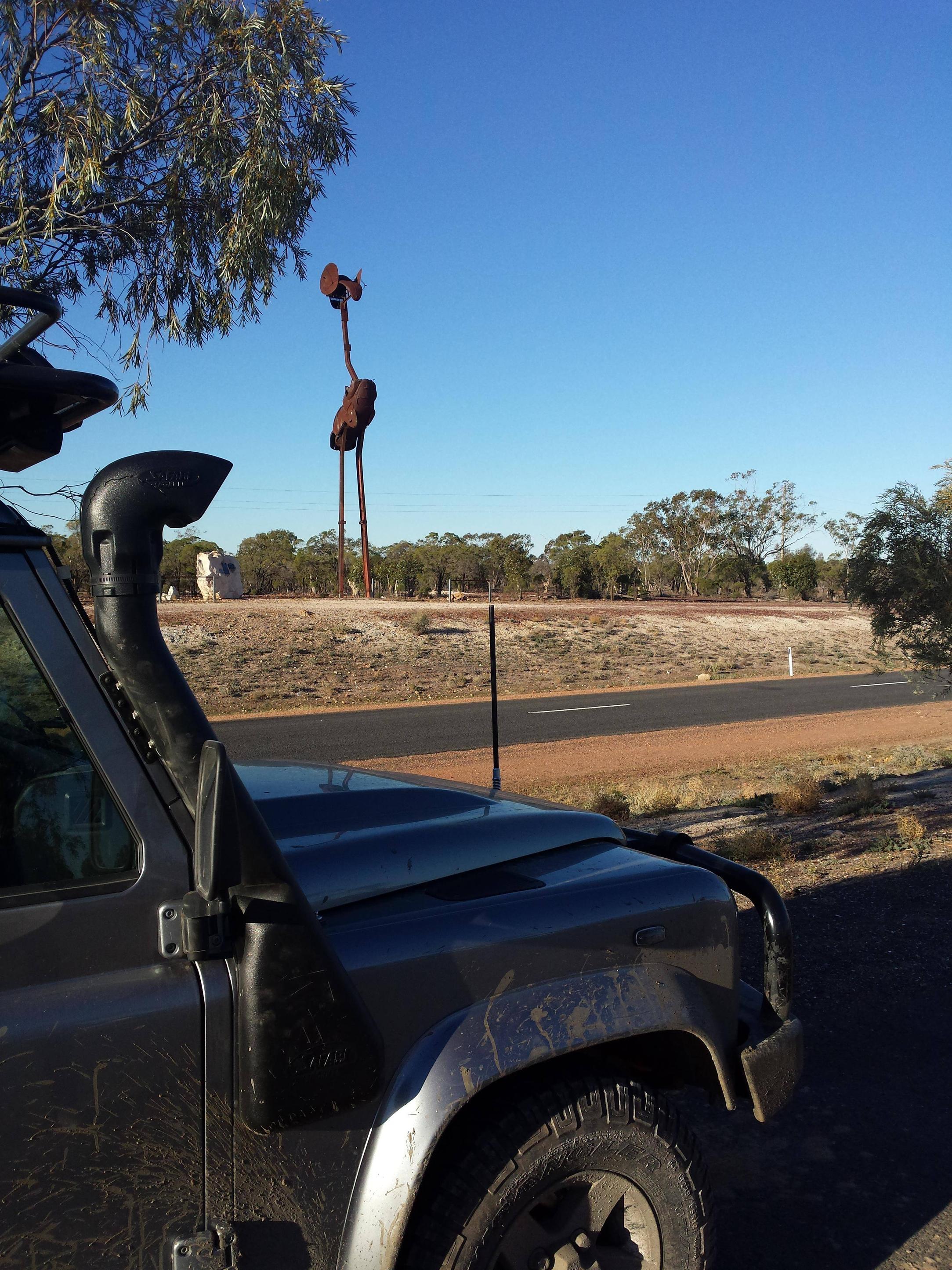 We headed to the Ridge via the Cumborah - Lightning Ridge road. On the way we paid a visit to Stan the Emu, an 18m tall sculpture made from scrap steel and old VW Beetles.