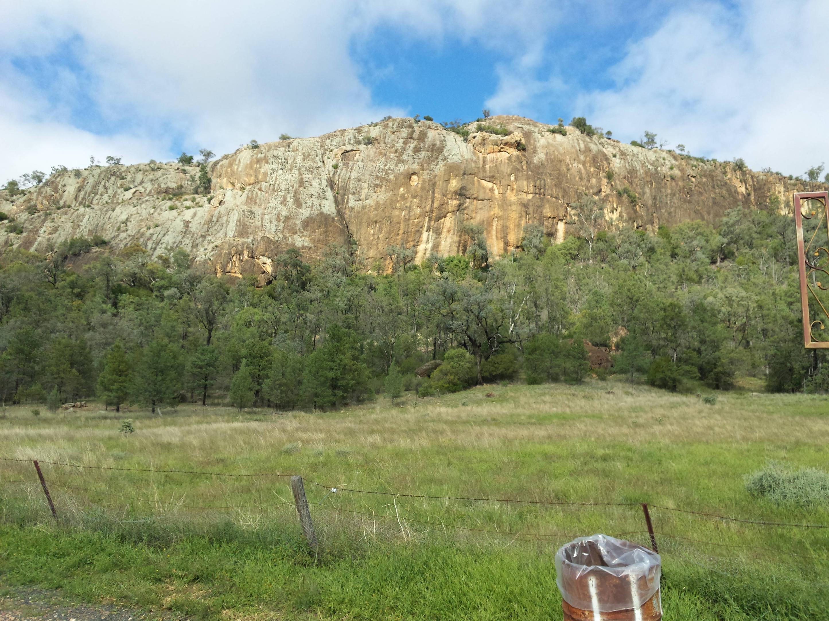 We departed early Sunday morning from Tamworth, grabbing a coffee for the road. We made a B-line to Gunnedah NSW before heading to Boggabri for a squiz at 'Gins Leap'. Story has it that 2 young aboriginals from different (warring) tribes ran away, and were tracked by their tribe. They leaped from the tall cliffs to their deaths to prevent capture and punishment. Gins Leap was also the site of a hotel back in the 1800's where the graves of the family now stand.