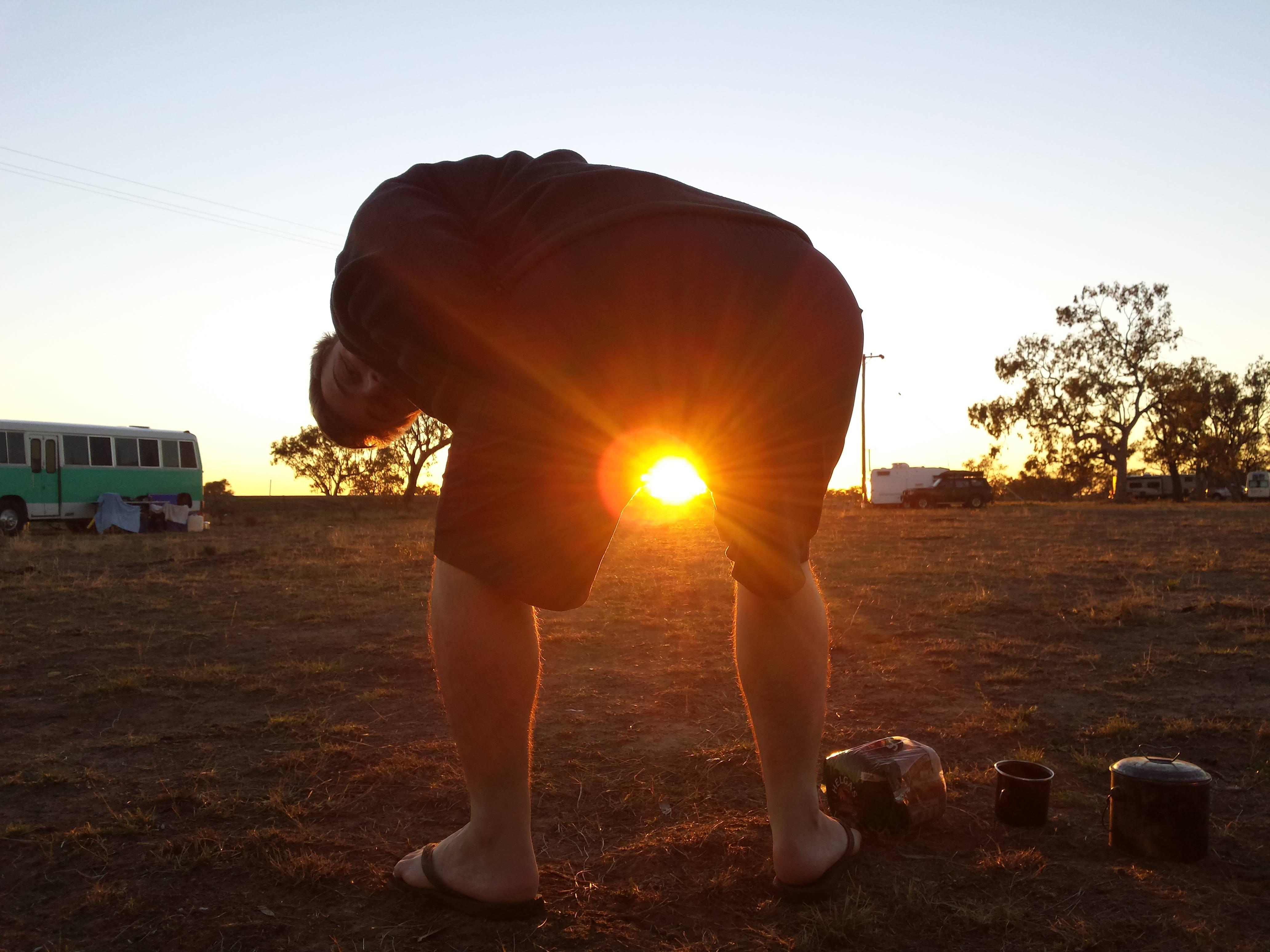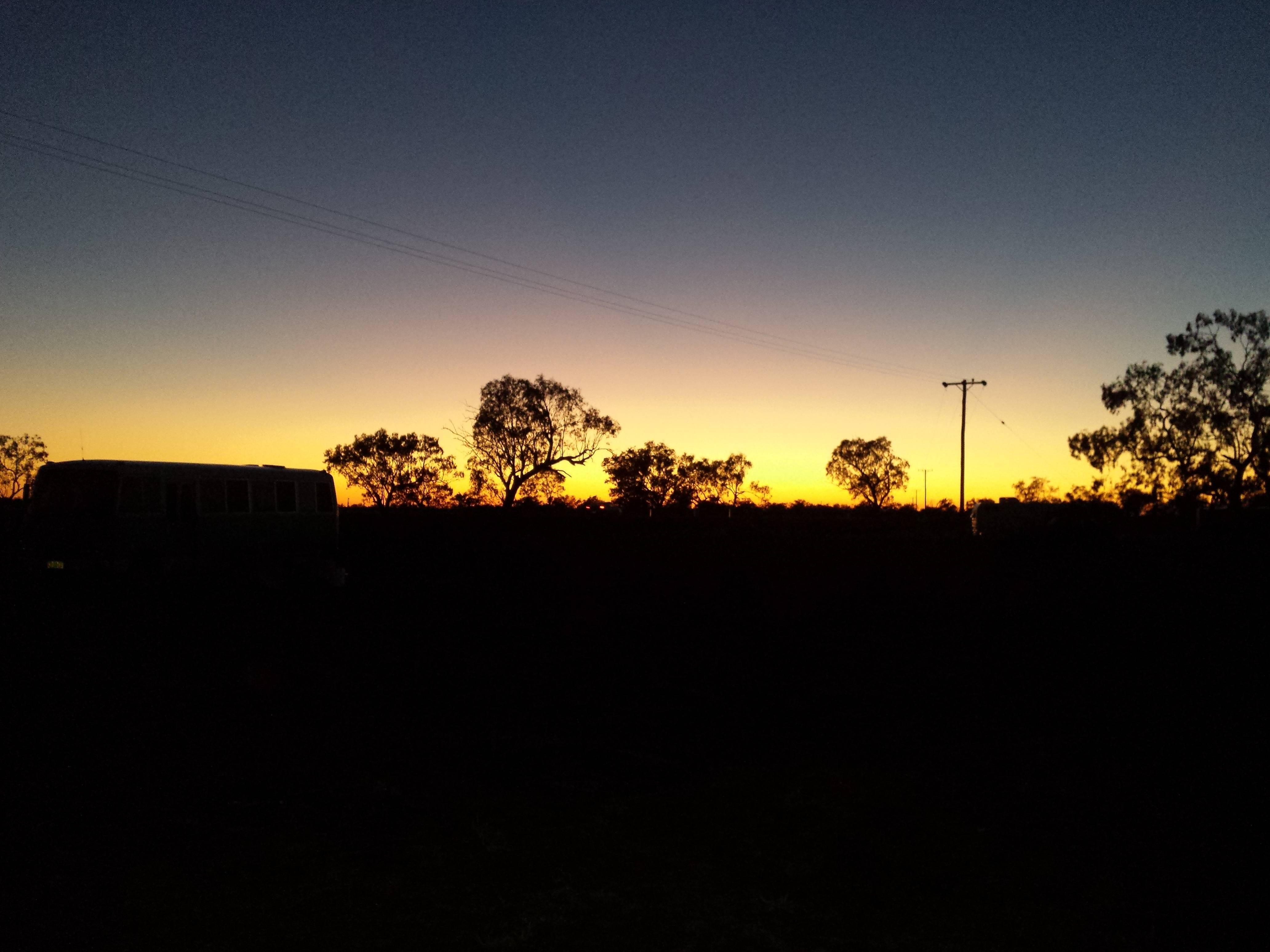 Got an early start at Pilliga, mainly due to being a bit cold the night before- there was plenty of wind and temps dropped to about 5 celsius. I woke up and made the obligatory instant coffee and toast while watching the sun rise. I watched the stars fade, and the purples, oranges and reds appear in the sky.