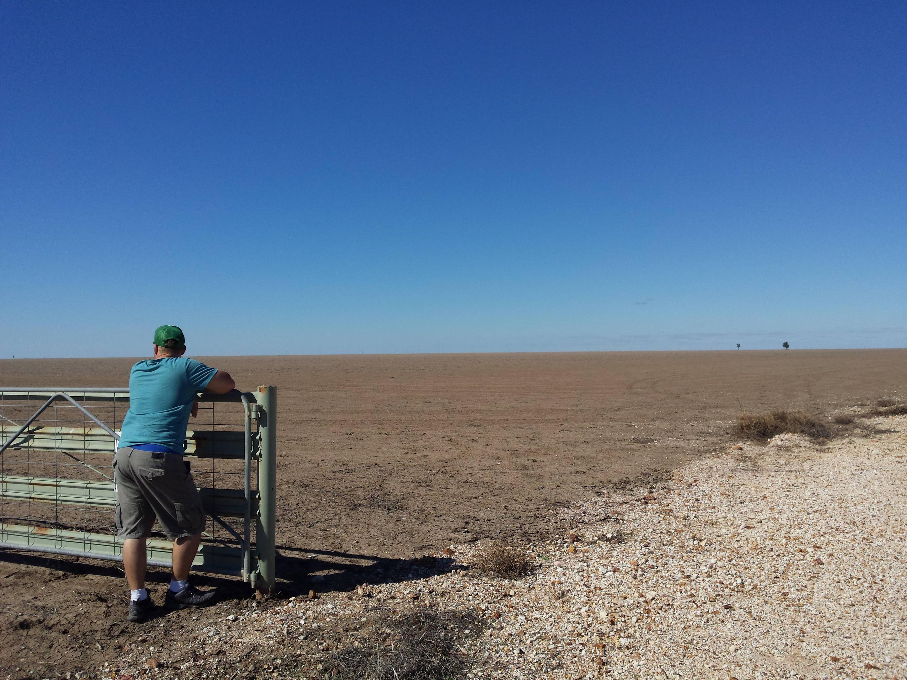 We also found a good photo op in the vast expanse of this farming region. The Walgett region is doing it tough with a lack of rain, forcing farms (predominantly cotton IIRC) to cease planting for the year. I've been told in the past, that a large cotton farm can plant $1M of seed for a season, so the prospect of no rain or secured irrigation to sustain their crops could be a costly one.