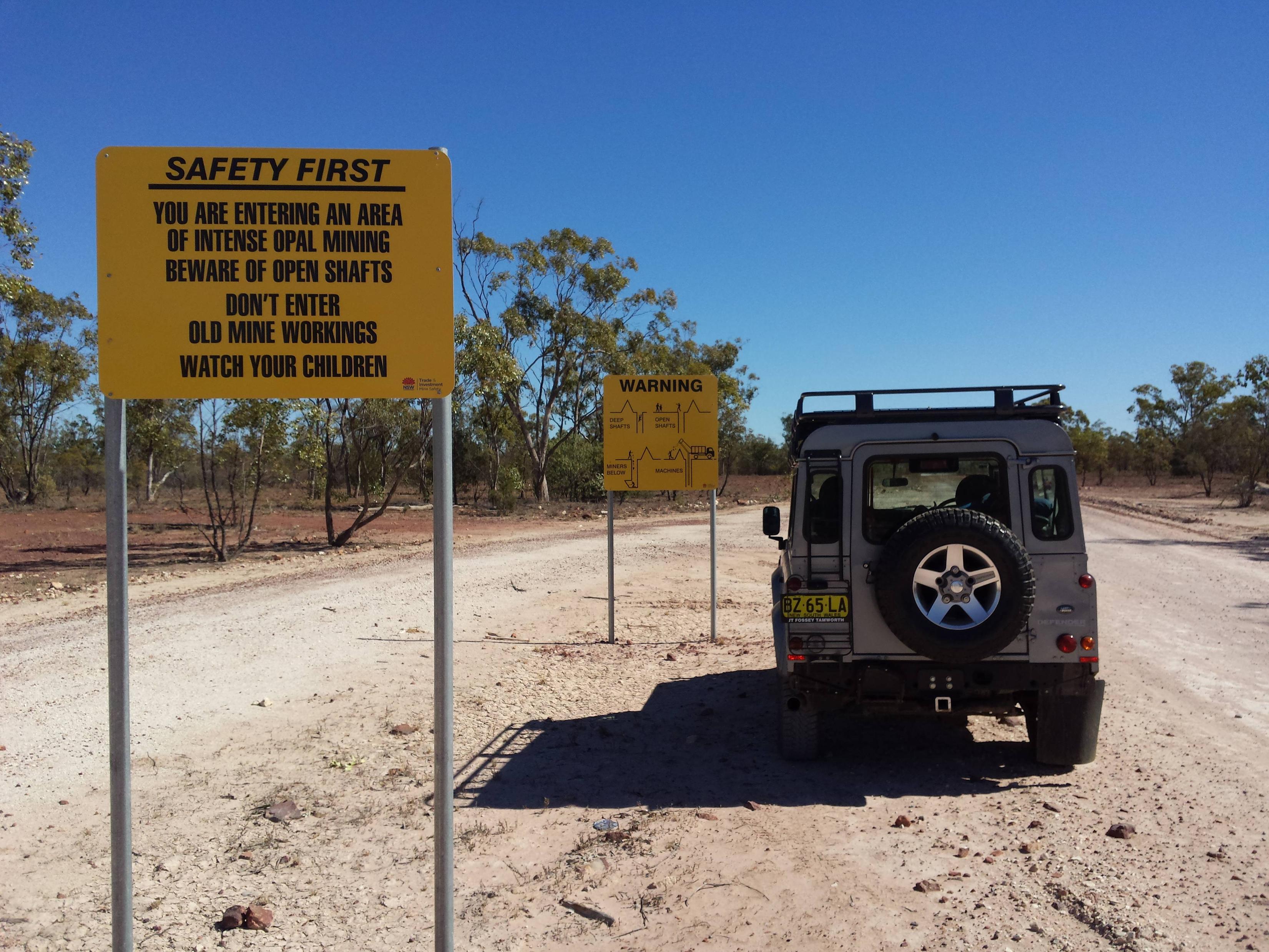 "Cars with Brakes GIVE WAY" Half the cars on the road were unregistered. Not sure how the opal fields are classified- public or private road. might be a question for the experts.