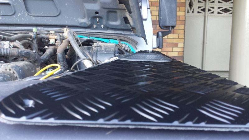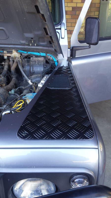 I wanted what could be considered a semi-permanent install, but on the other hand, I want something that was going to preserve the finish underneath, and not be likely to corrode itself into place over time. The chosen path involved the aluminium checker plate, a set of the wing top gaskets, and aluminium riv-nuts to secure it to the vehicle. I used a product called duralac, which is an anti-corrosion jointing compound to prevent any undue corrosion between the material used (stainless steel does not play nice with aluminium in certain environments). My main concern here was that the gasket kit would absorb crud over time and keep the panel wet and accelerate corrosion. Enough talk here's some pics.