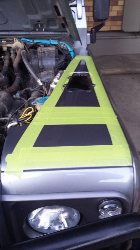 I like my landy. and I like how shiny it is (even though most of the time it's filthy dirty). So it was with much apprehension that I commenced drilling into the panels for the install of some mammouth wing top protectors in a nice black finish.