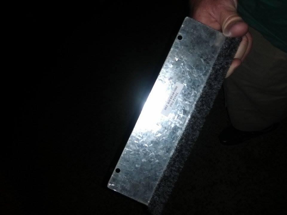 The short carpeted piece is meant to go on the rhs, but would foul the door stopper.