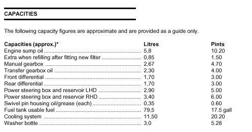 I just checked my hard copy Defender 1984-onward and RRC manuals and both say 0.35 litre.