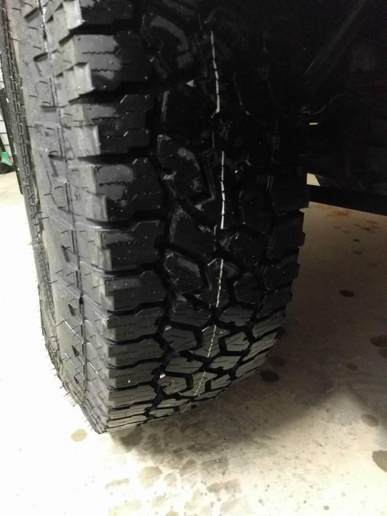 The original Goodyear MTs were getting a bit too smooth and not as knobbly as they once were, but I don't really need another MT, so I settled on some Falken Wildpeak AT3W LT235/85R16 from the local Bob Jane.