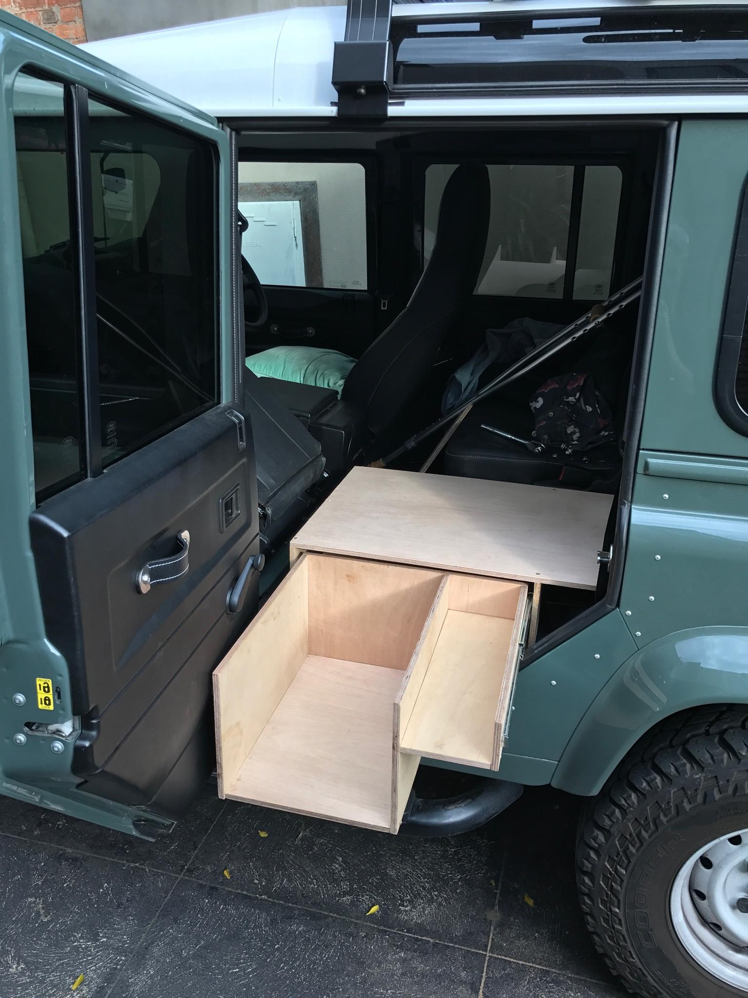 I got most of the way through building a fridge platform and drawer in place of the passenger side rear seat. The 40 of the 60/40 split. The plan is to use the larger part of the drawer for food and the smaller part for cutlery etc