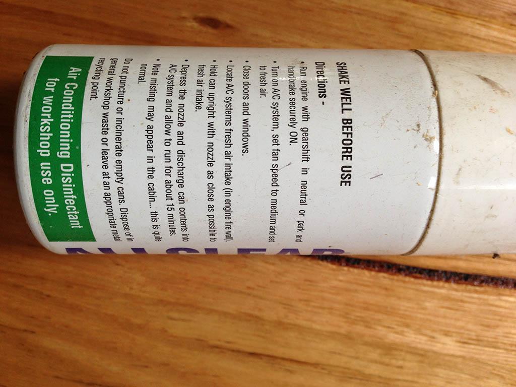Supercheap or Autobarn. Autoglym aircon freshener, I use it every 6 months in my air ons. Kills mould sand fragrances the aircon. An excellent product.