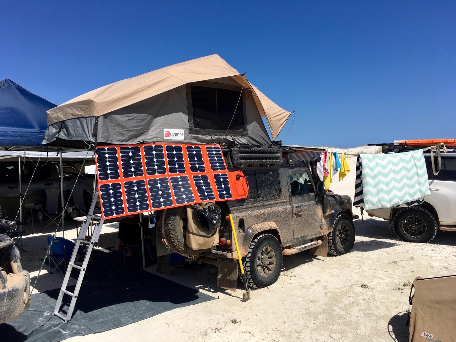 early xmas present; baintech 180W solar blanket to keep the the 2nd battery topped up whilst we are away over the xmas break - Overland Telegraph Track across the bight.