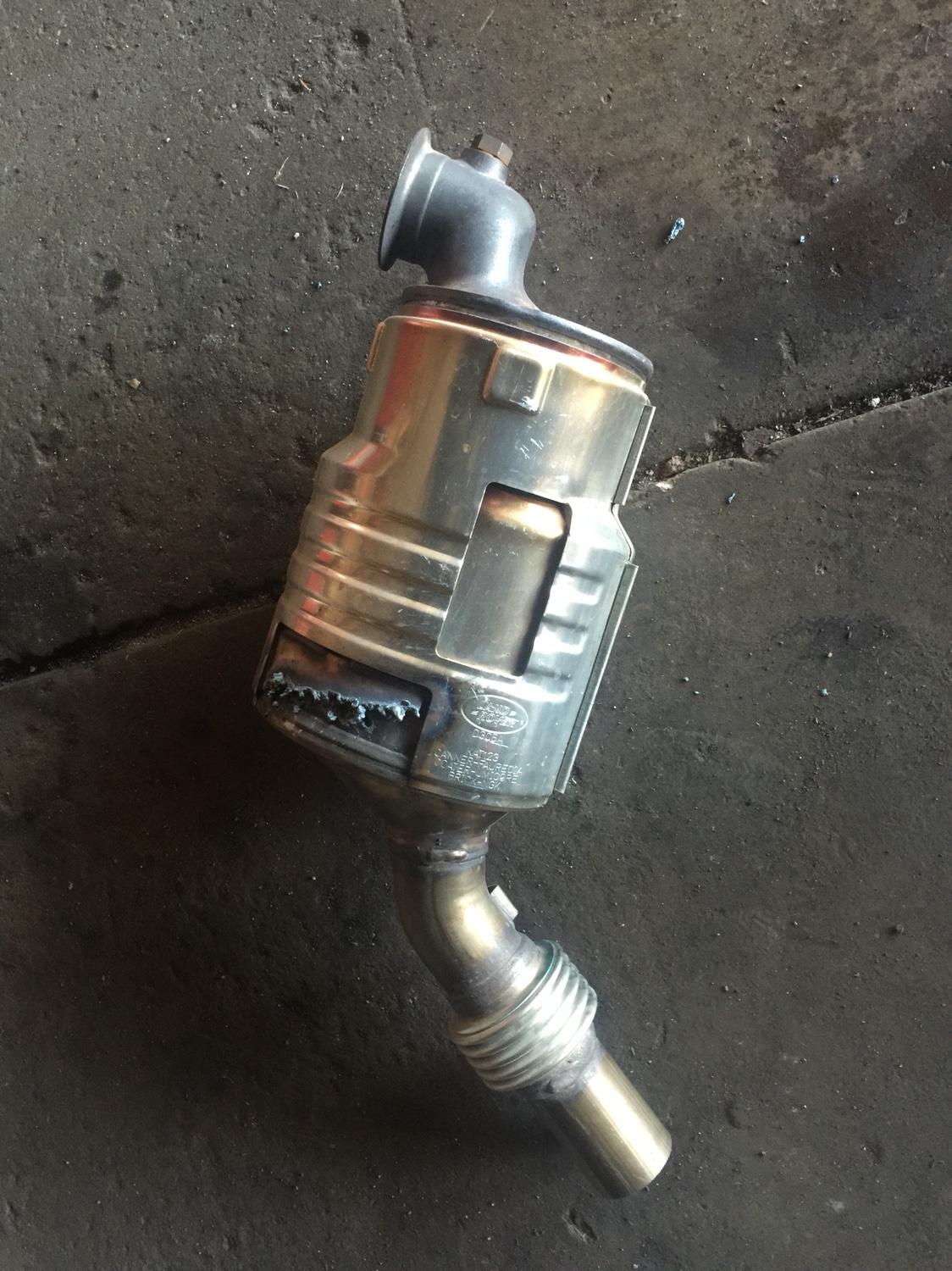For the ones that are interested, recently had to replace a blown turbo on a Defender 2.2lt TDCi (puma) and did a CAT delete at the same time. Bit of a pain to get out, had to undo the engine mount nut and jack up engine, then still had to bend bracket on cat before I could squeeze it out. Should be the same deal for a 2.4 TDCi (puma) but as the CAT is a bit smaller it may well just fall out.