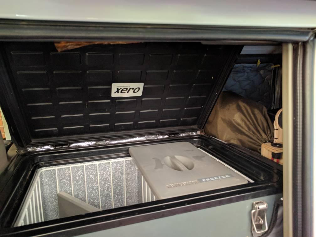 My fridge set-up below - Waeco CFX40 with MSA drop slide.