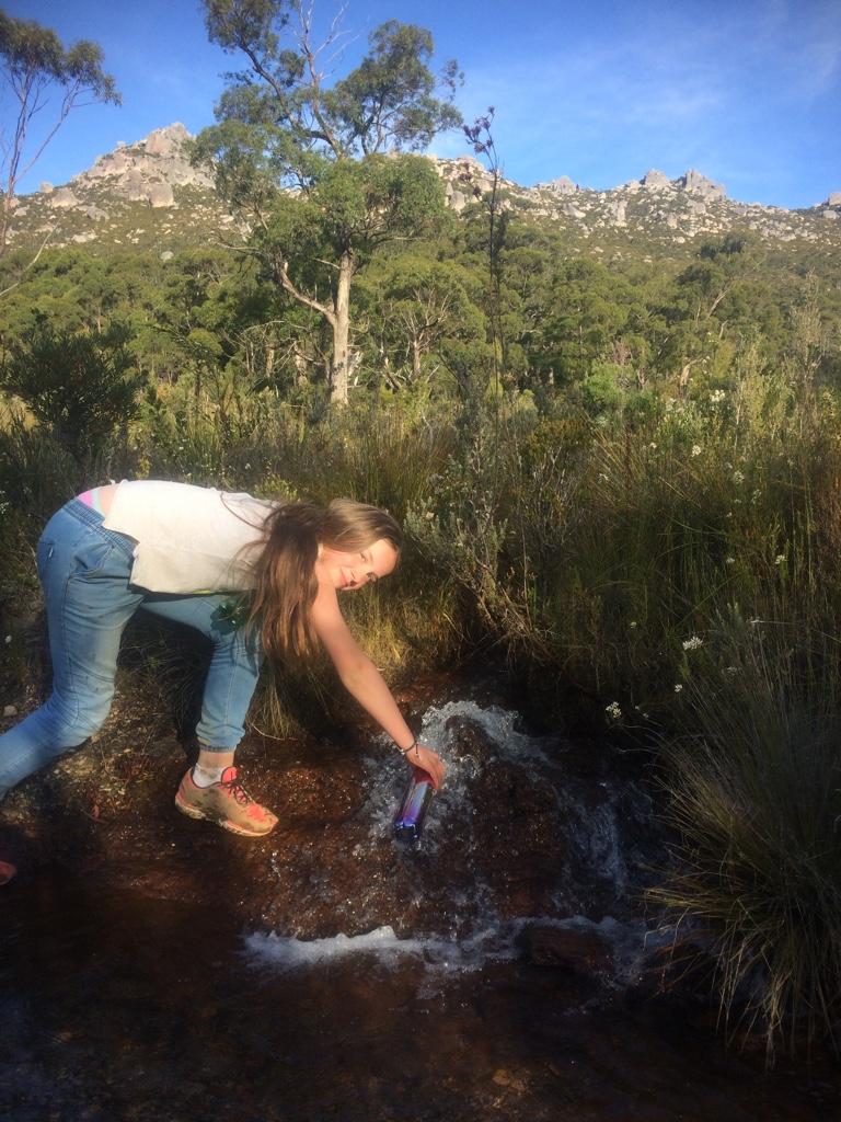 There were some beautiful clear water crossings toward Adamsfield and, as you can see from the pic of my eldest filling her drink bottle, there's a spring that gushes thousands of litres an hour; fantastic!