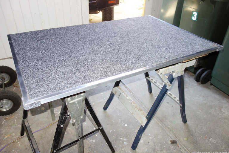 I snatched victory from the jaws of defeat at two stages in the process. Laying the carpet: that contact adhesive grabs and doesn’t give back! The miters at the corners of the channel turned out ok given that I used a jig saw rather than a drop-saw.
