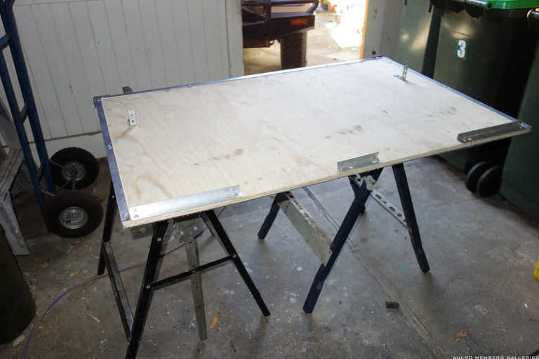 The rear edge is bolted to the drawer unit using the existing four rivnuts on the unit. Given that the holes in the ply were close to the edge I reinforced them with some angle I had lying around. Some flat would have done equally well but I didn’t want to do another circumnavigation of Bunnings.