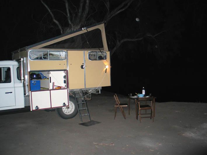 All up, with two spares, 110 litres of water, 140 litres of fuel, extra batteries, a gas barbecue, shower, porta-potti, two gas bottles, air compressor, tools, spares and an obscene quanitity of booze it weighs in at just over 3 tons.