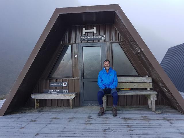 Harris Saddle Shelter. It was a tad cool up here.