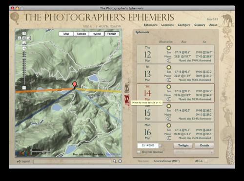 It calculates when the golden hour (that magic hour in the morning and evening where everything is side lit with a golden glow) occurs for a given map location.