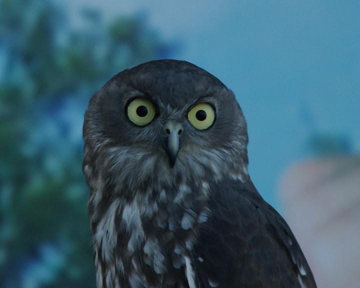 This is a Barking Owl (Ninox connivens). Reasonably common in dry forest areas. Their calls do sound like dogs barking and they also have a blood-curdling scream, which they refer to as the "Screaming woman" call and it has been known to fool many folks into thinking there is a murder being committed. Google the calls and hear for yourself.![]()