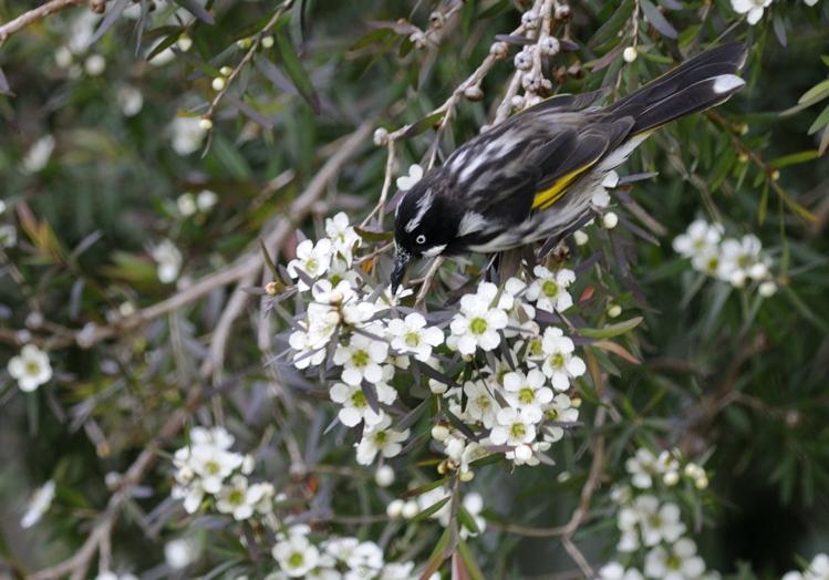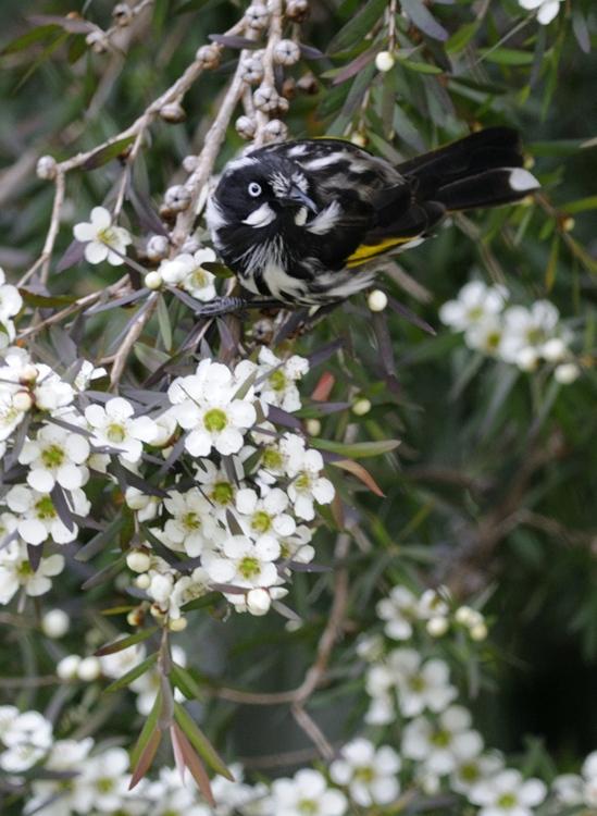 I borrowed from my son his Nikon D300s with the awesome Nikon 300mm f/4 and took from the distance these snap shots of New Holland honey eaters in his garden.